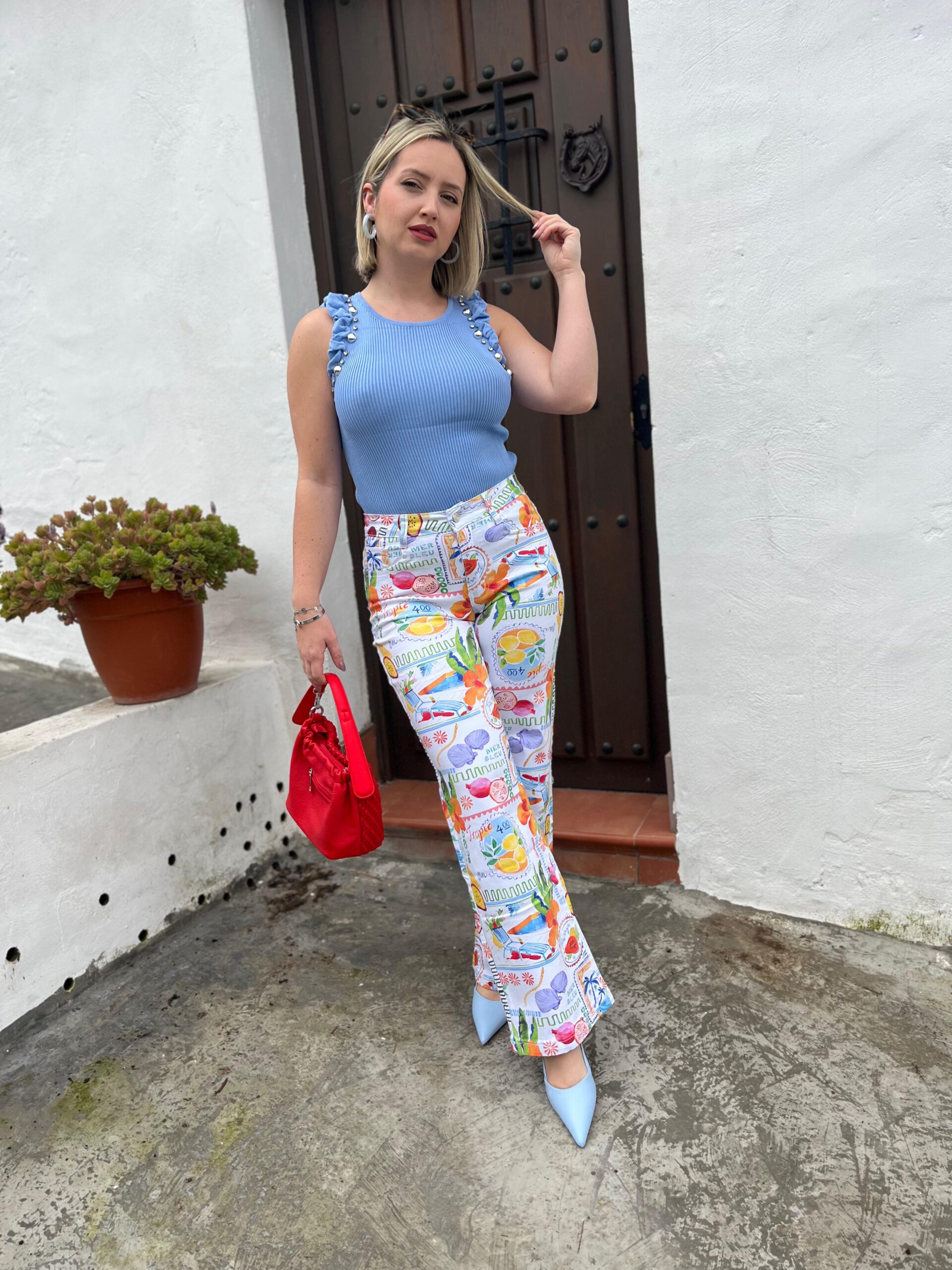 PANTALON ESTAMPADO FLORAR Y FRUTAL POR TALLAS